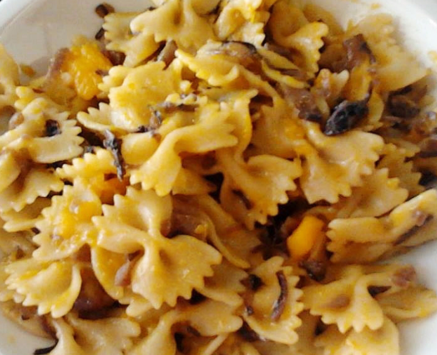 Ricetta Primo con funghi farfalle zucca e rosmarino